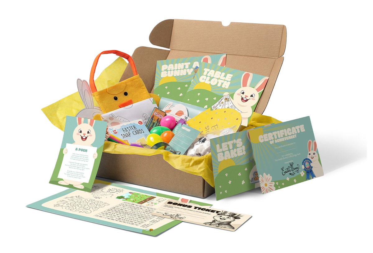 Our Easter kits include Easter egg hunt supplies, crafts, games - everything you need for a fun celebration.